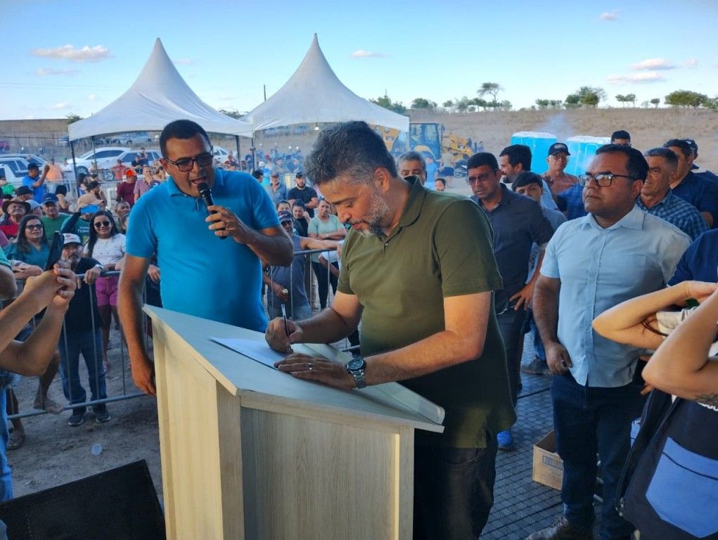 A Prefeitura de Vertente do Lério realizou, na tarde do sábado (24 de janeiro), a solenidade de assinatura da ordem de serviço para a pavimentação da estrada que liga a PE-106 ao Distrito do Tambor. O evento aconteceu às margens da PE-106, na entrada de acesso à via que conduz ao distrito, reunindo autoridades políticas, lideranças locais e moradores para marcar oficialmente o início de uma obra aguardada há décadas pela população.